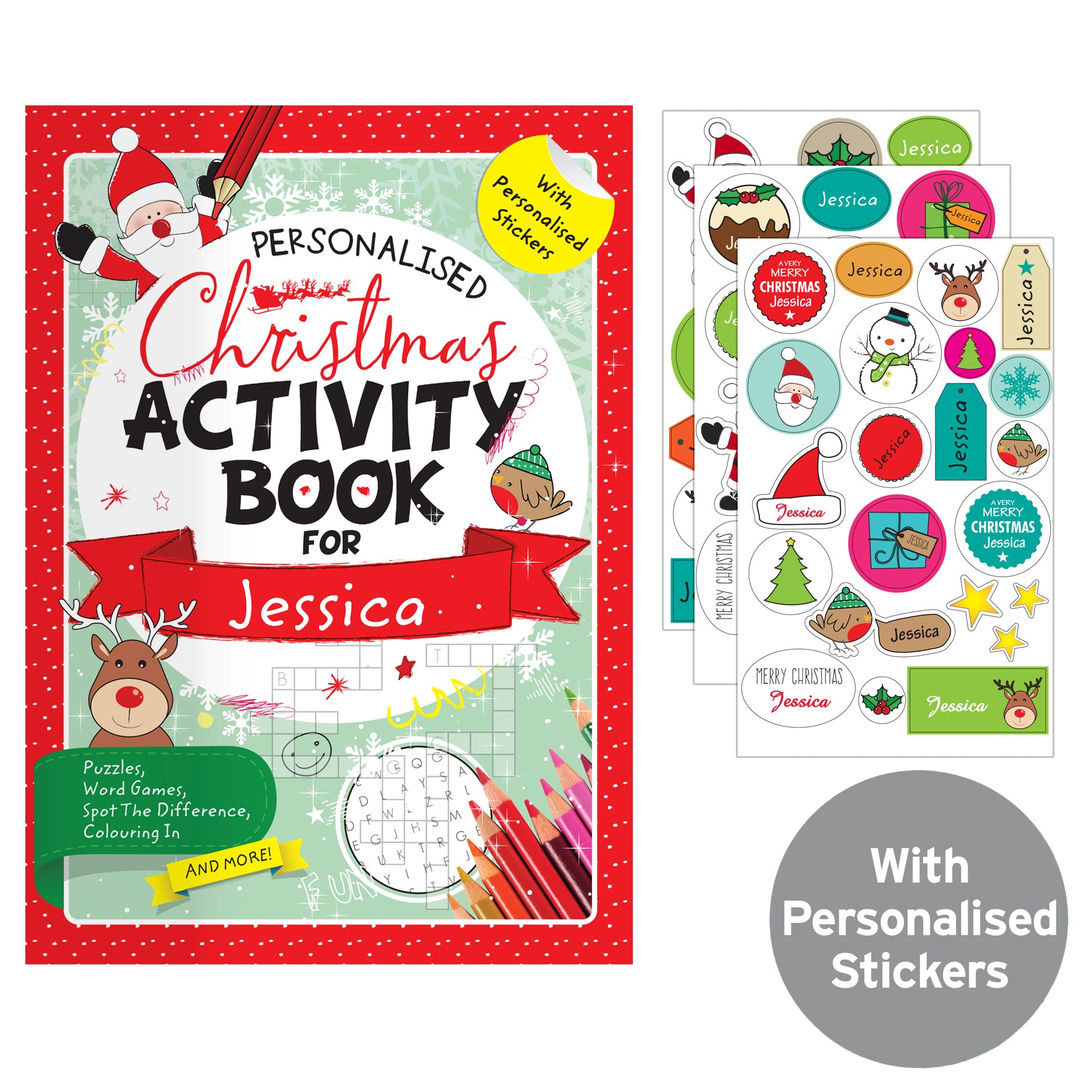 Personalised Christmas Activity Book With Stickers – Stocking Filler