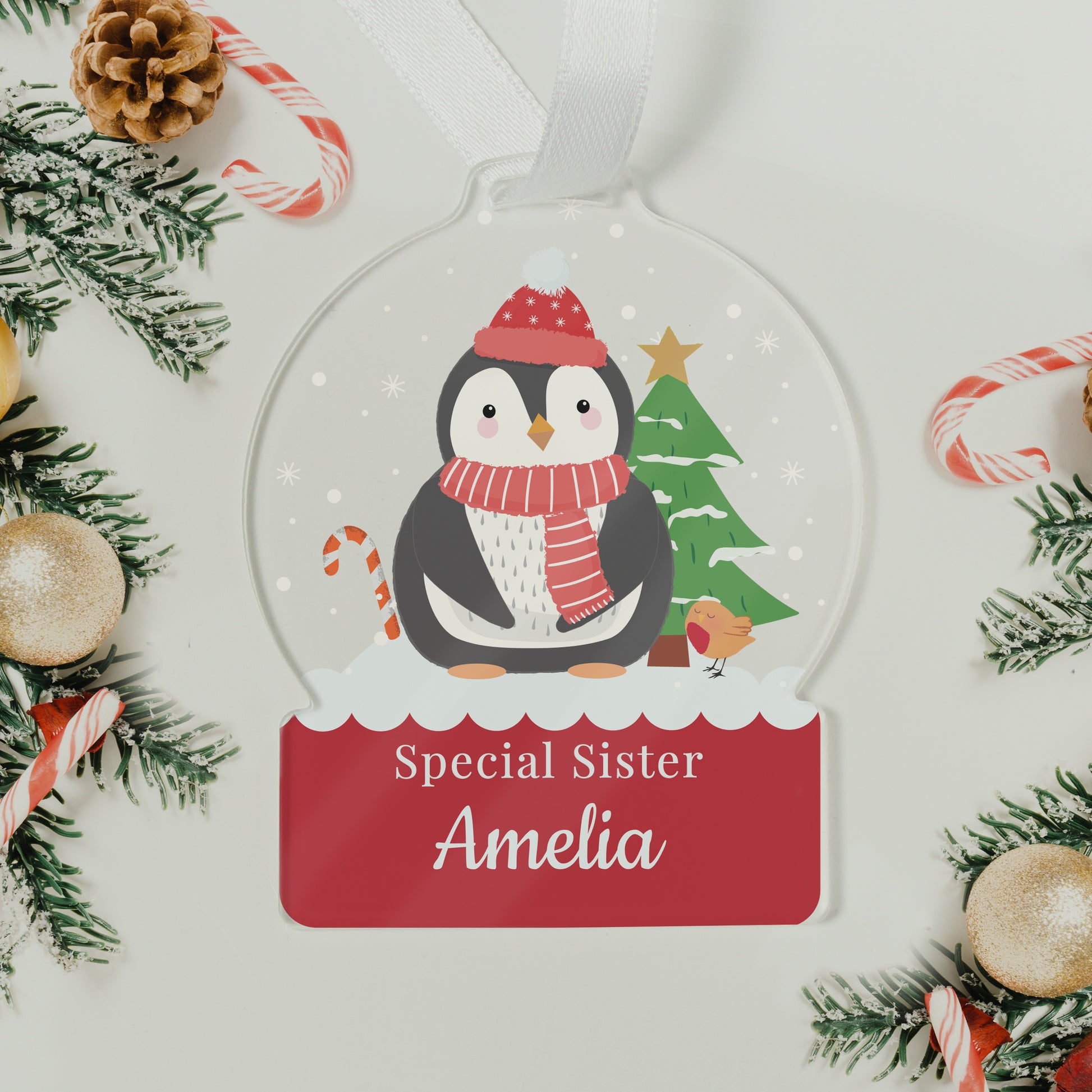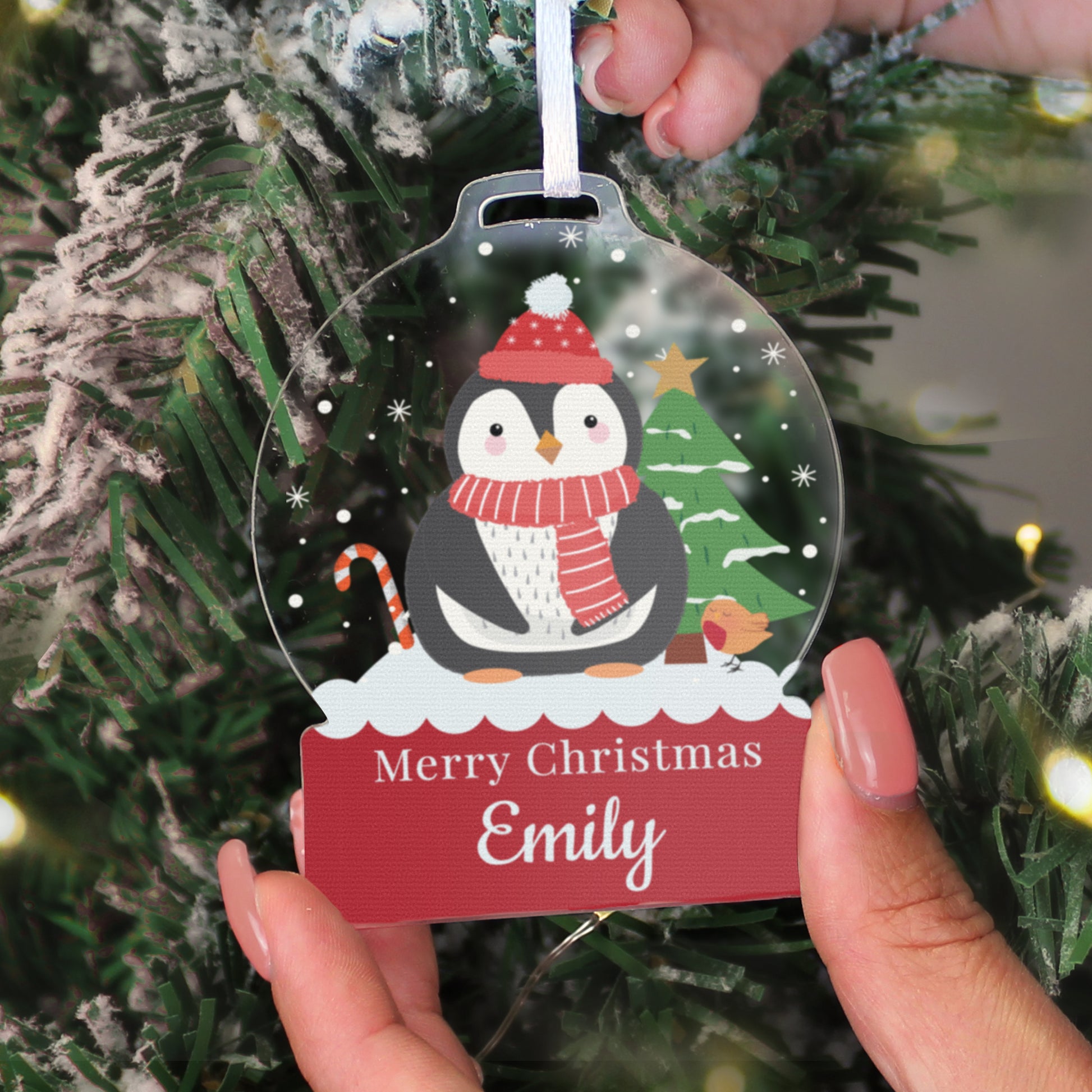 Personalised Penguin Acrylic Snowglobe - Gift Boxed