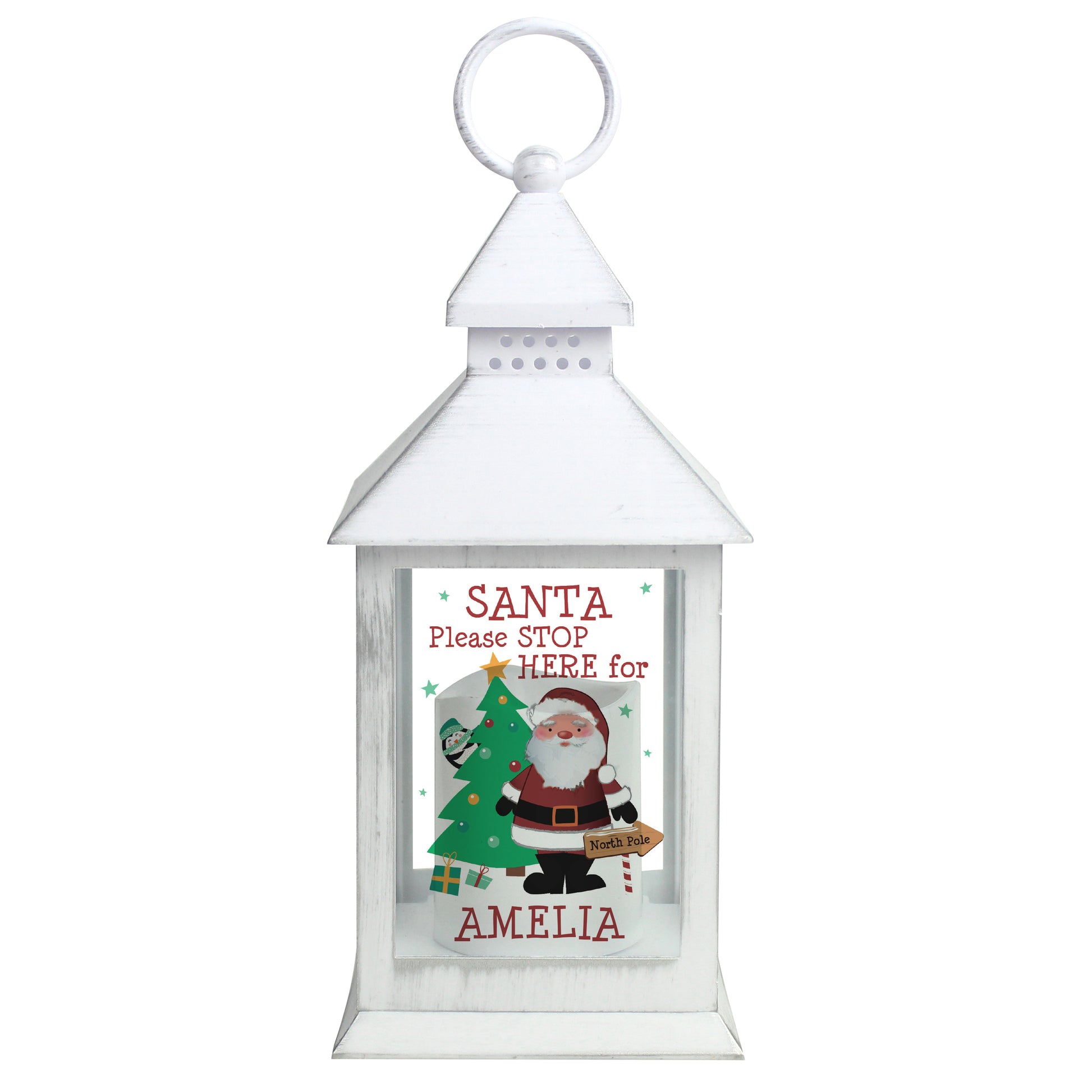 Personalised Santa Stop Here White Lantern